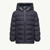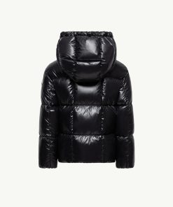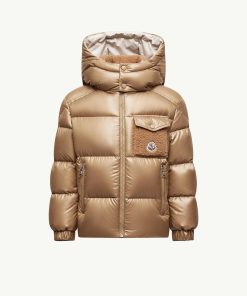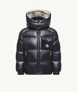 Instantly recognizable, the Parana down jacket is crafted from glossy nylon laqué. Characterized by squared quilting, contrast color lining and a detachable hood, the short puffer is a practical piece that goes from the school yard to the playground.