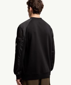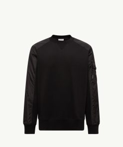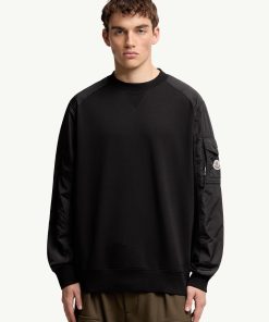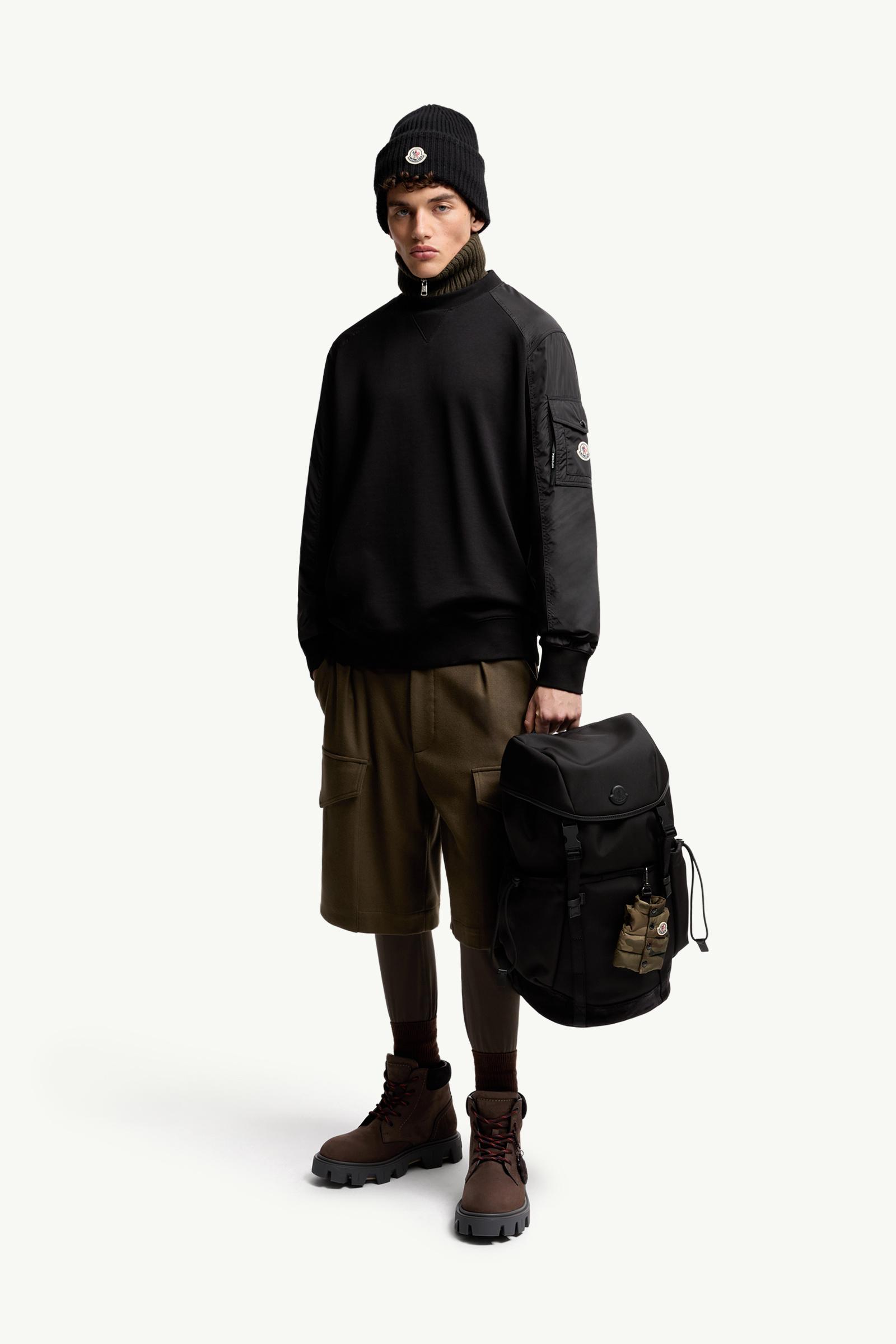 Experimenting with contrasts, this sweatshirt pairs soft cotton fleece with shiny nylon details. Subtly nodding to the brand’s heritage, a sleeve pocket adds the finishing touch. Pair with matching sweatpants for a relaxed total look.