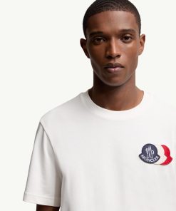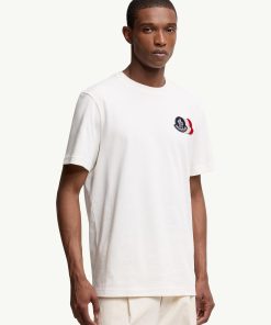 A contemporary take on Moncler’s logo, this short sleeve t-shirt recreates the signature tricolor through embroidered patches. The classic crew neck is crafted from organic cotton jersey.