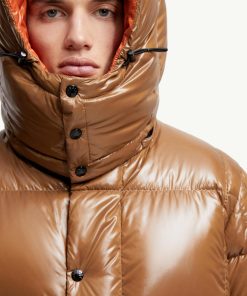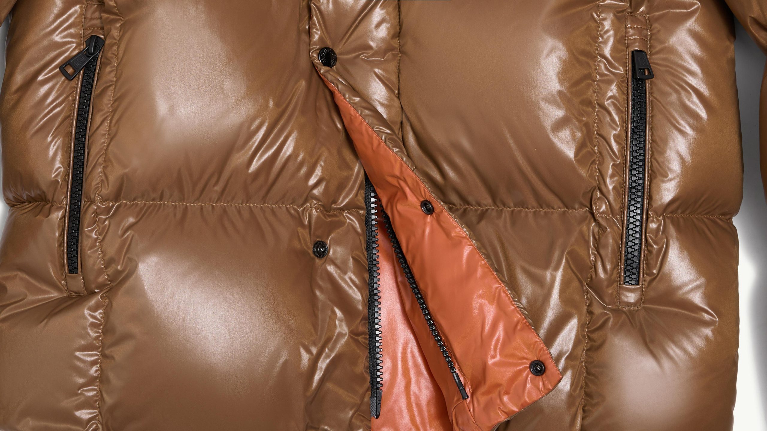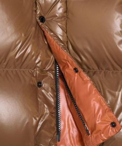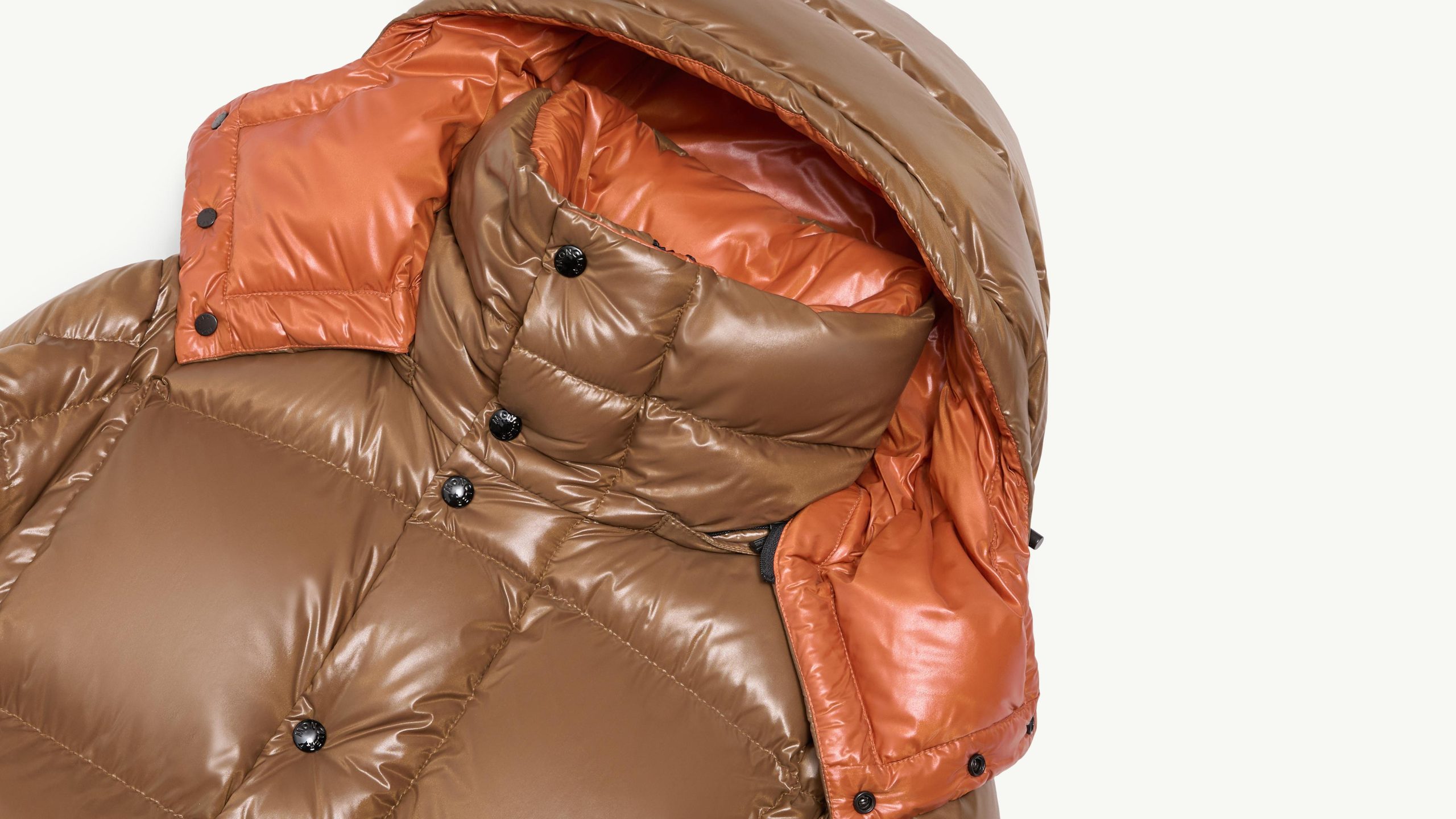 This Parana down jacket is characterised by its bold glossy texture. The short puffer is crafted from nylon laqué, a signature fabric noted for its lightweight warmth and breathable comfort. Easy to wear in different conditions, the warmer is completed by a detachable hood.