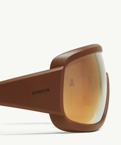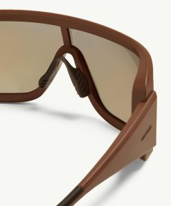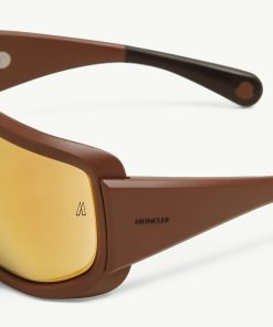 Taking inspiration from the brand’s mountain DNA, the Snowseeker sunglasses are featured in a futuristic mask silhouette. The rectangular-shaped shades pair an oversized frame in brown with mirrored brown gold lenses, infusing the design with a contemporary feel.