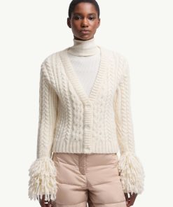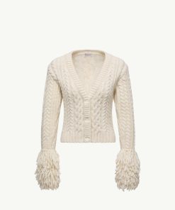 A creative take on the art of layering, this cardigan features a bold textured trim. Featured in a feminine V-neck shape, the heavy knit is crafted from a sophisticated alpaca blend.