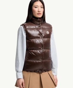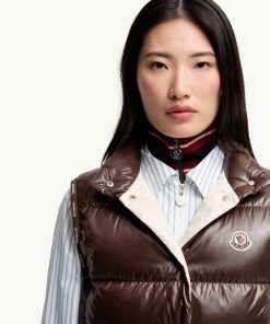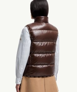 The Badia down vest is crafted from nylon laqué—an iconic material with a luxurious shiny finish. The puffer vest has a versatile shape that layers well over workwear or weekend casuals.
