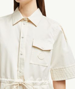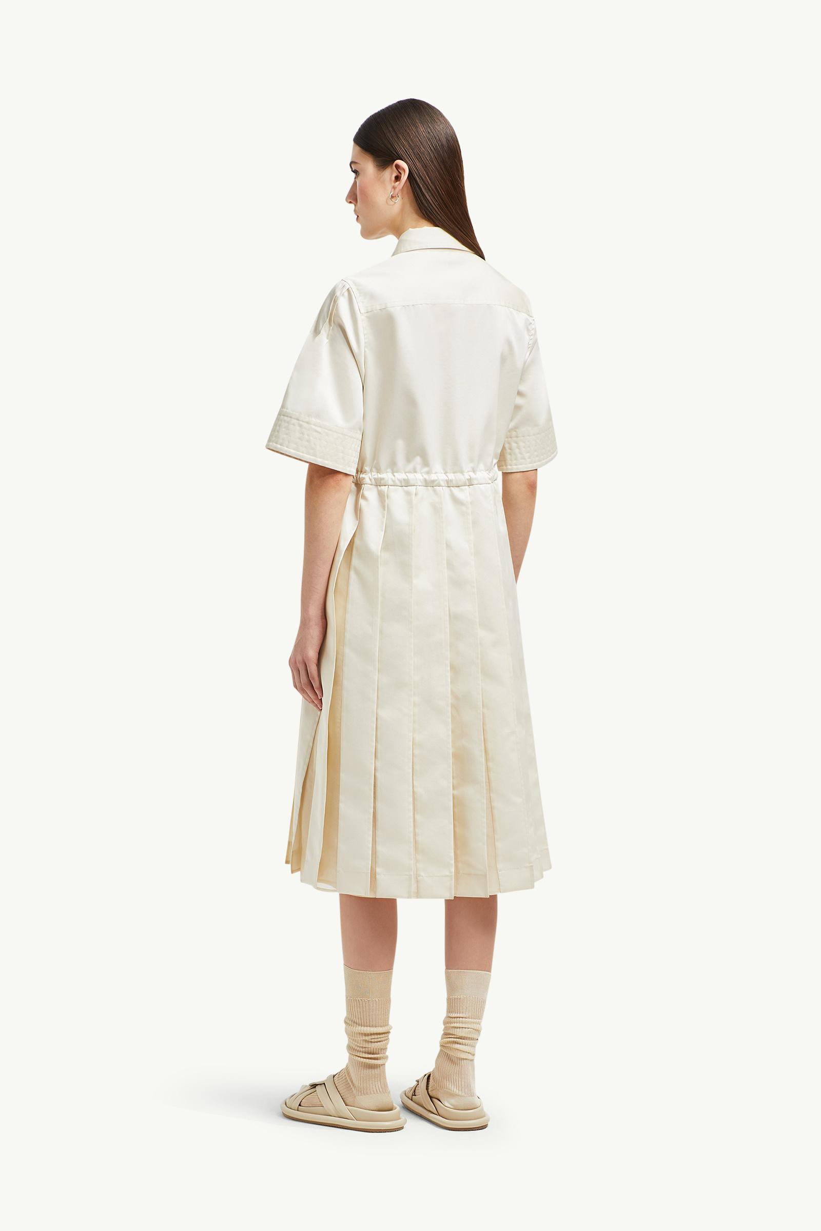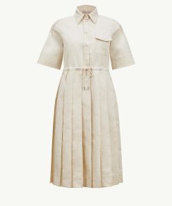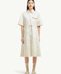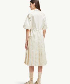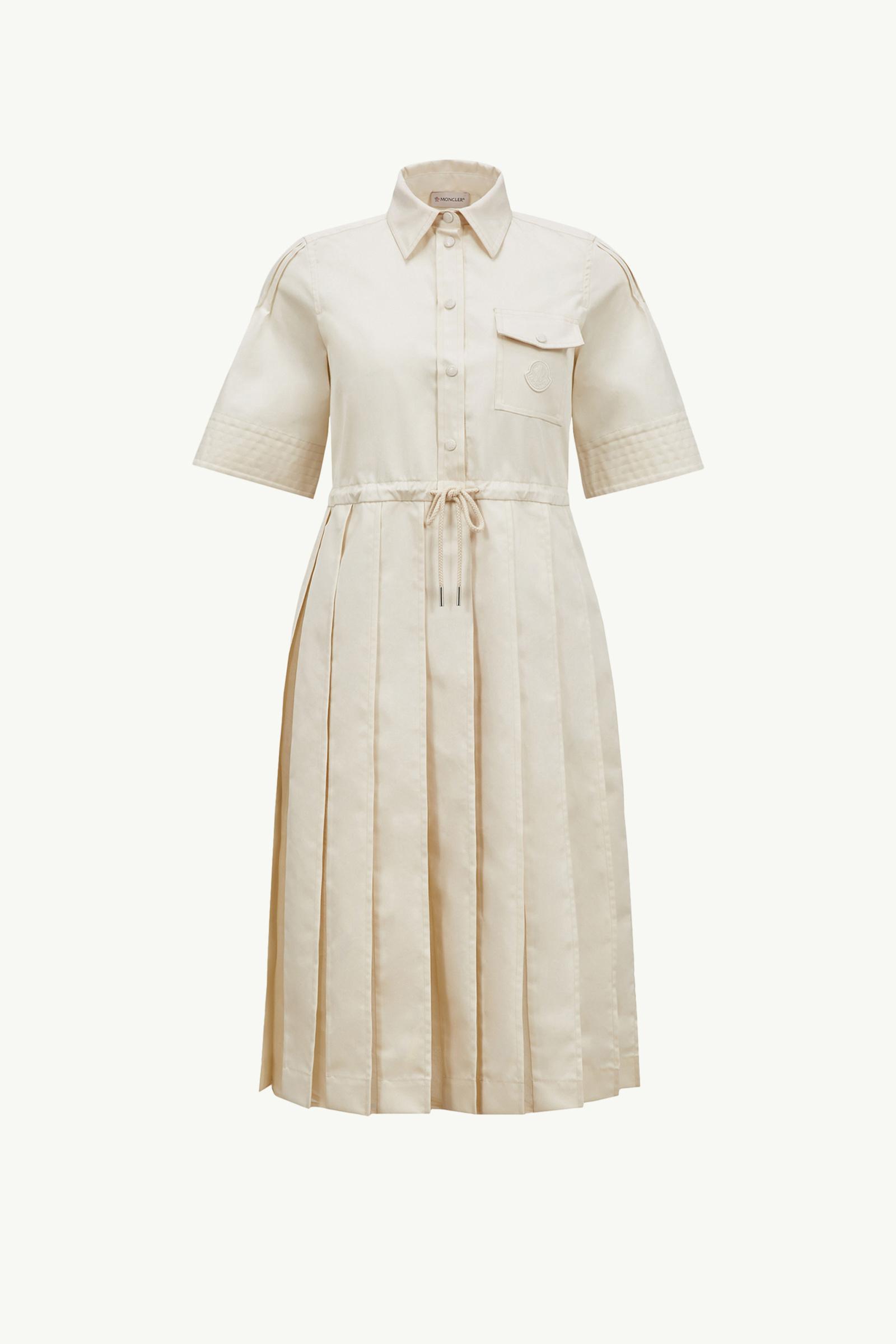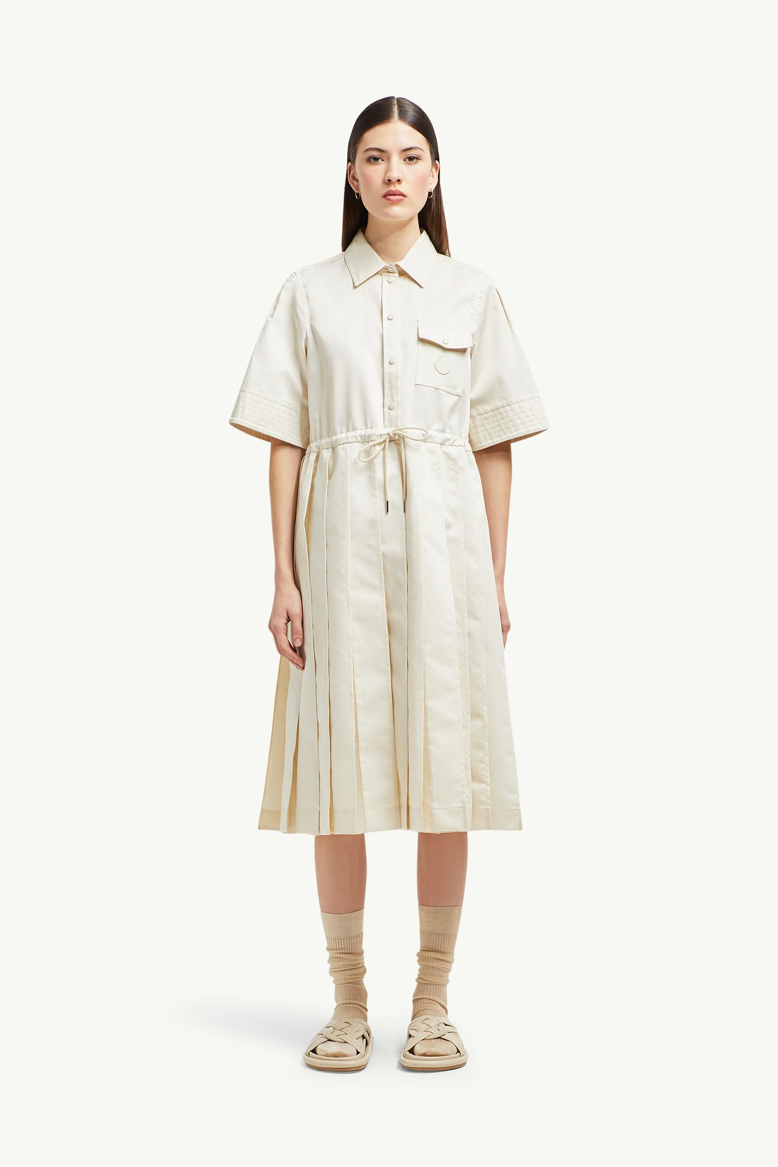A fair weather favorite, this shirt dress is crafted from lightweight cotton twill. The midi style pairs soft pleats with sheer silk panels to create a feminine aesthetic. A chest pocket and adjustable waistband add a casual finishing touch.