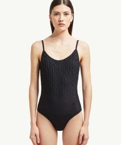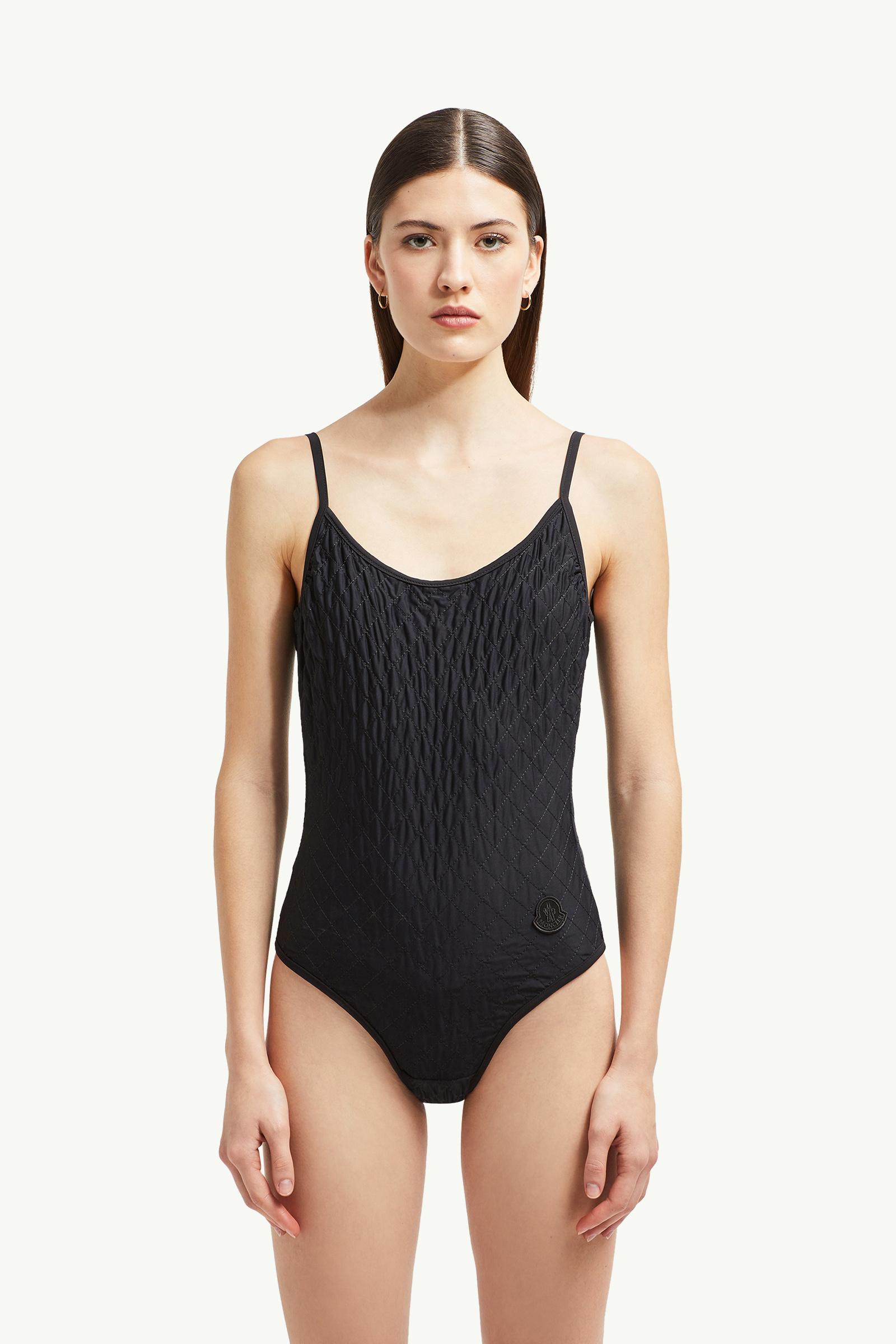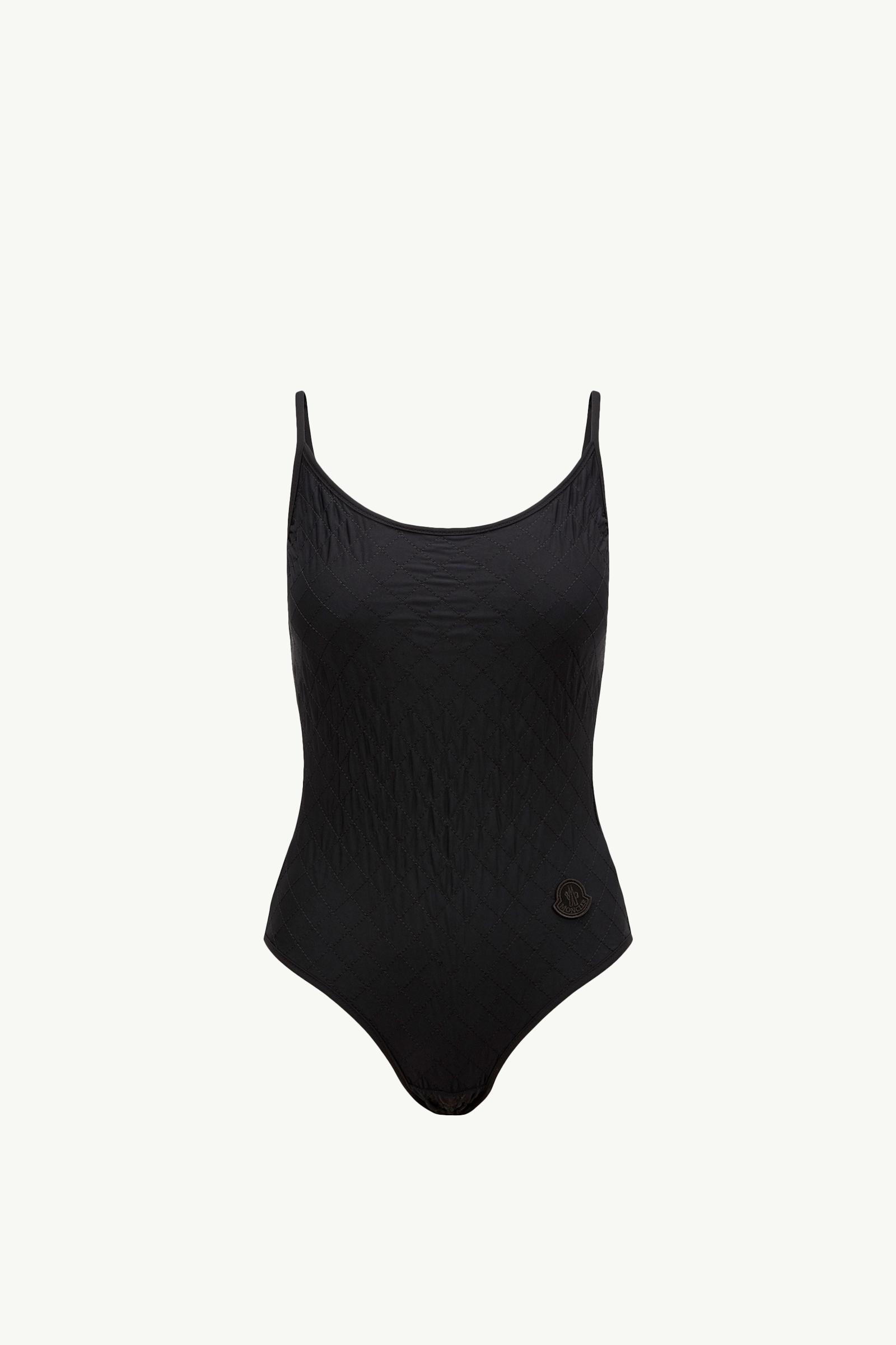Ideal for relaxing by the pool or at the beach, this swimsuit is crafted from technical jersey with a comfortable stretch finish. The one-piece features a quilted diamond pattern, subtly referencing brand DNA.