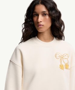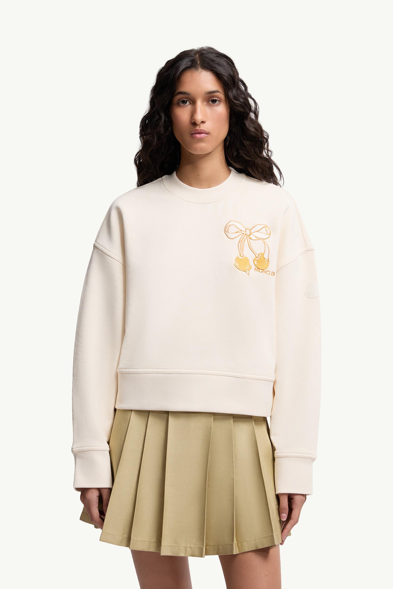 Moncler Women’s Embroidered Cotton Sweatshirt | White Ivory
