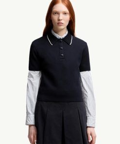 Adding a feminine note to a timeless silhouette, this cotton polo shirt is embellished with a rounded collar. The lightweight knit comes in a slim fit, easy to dress up or down with relaxed jeans or sophisticated slacks.