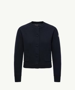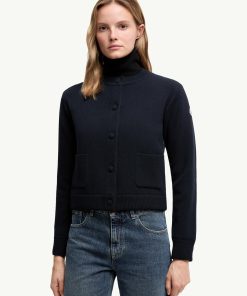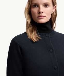 Designed for year-round elegance, this padded cardigan effortlessly doubles as outerwear when the weather permits. The classic design is crafted from carded wool with a warm down-filled back.