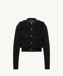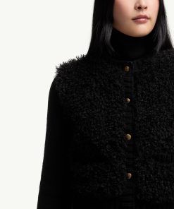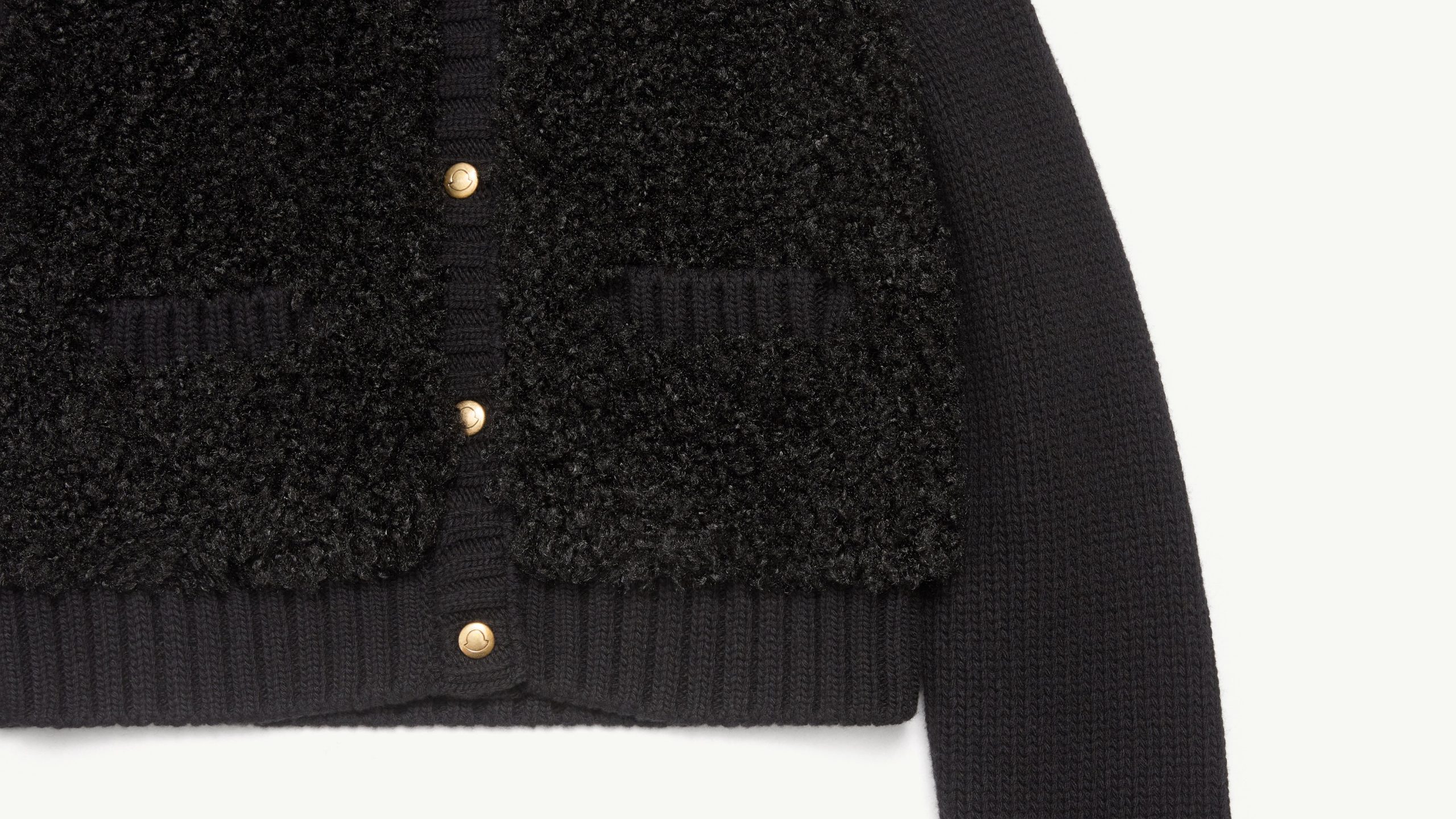 A year-round essential, this cardigan is enhanced with a down-filled back in lightweight nylon. The crew neck is knit from soft wool, further accentuated by a plush teddy front.