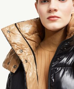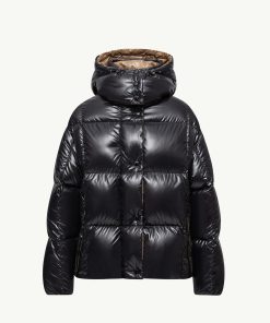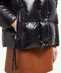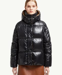 This Parana down jacket is characterized by its precious shiny nylon laqué texture. The short puffer’s grid quilting provides warmth without the bulk, while the detachable hood adds versatility for changing weather.