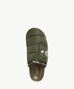 Moncler Women’s Shoes Mon Pocket Padded Leather Mules | Dark Green