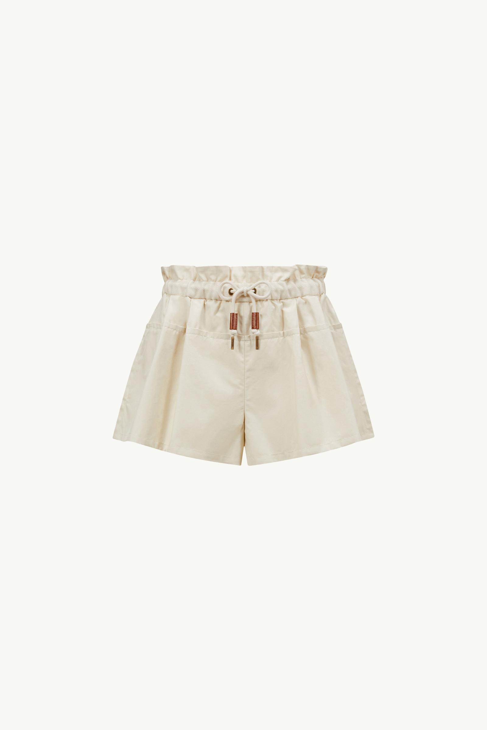 A feminine design for sunny days, these twill shorts feature a flared shape. The bottoms are accentuated by a cotton trim at the waist, subtly highlighting the silhouette.