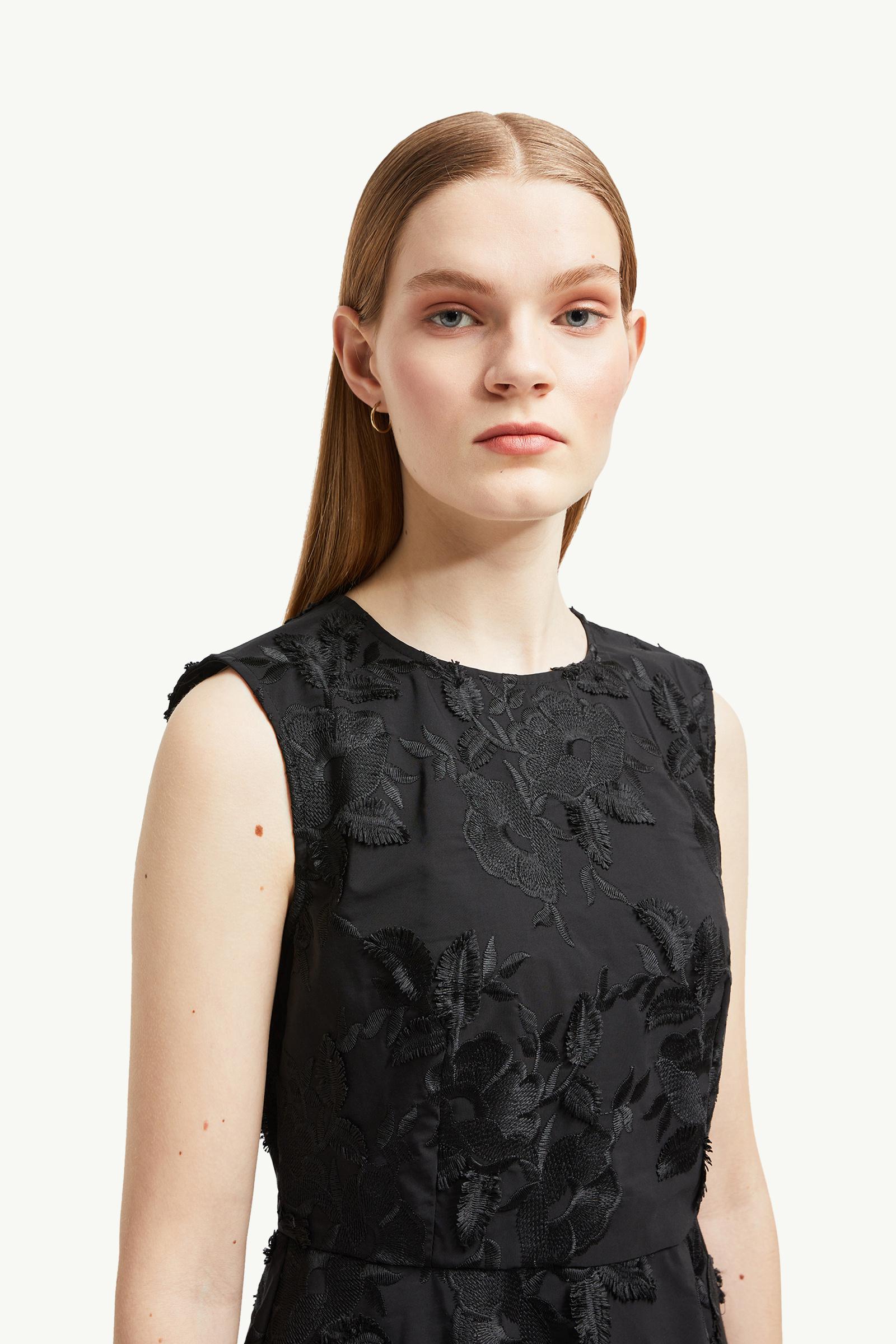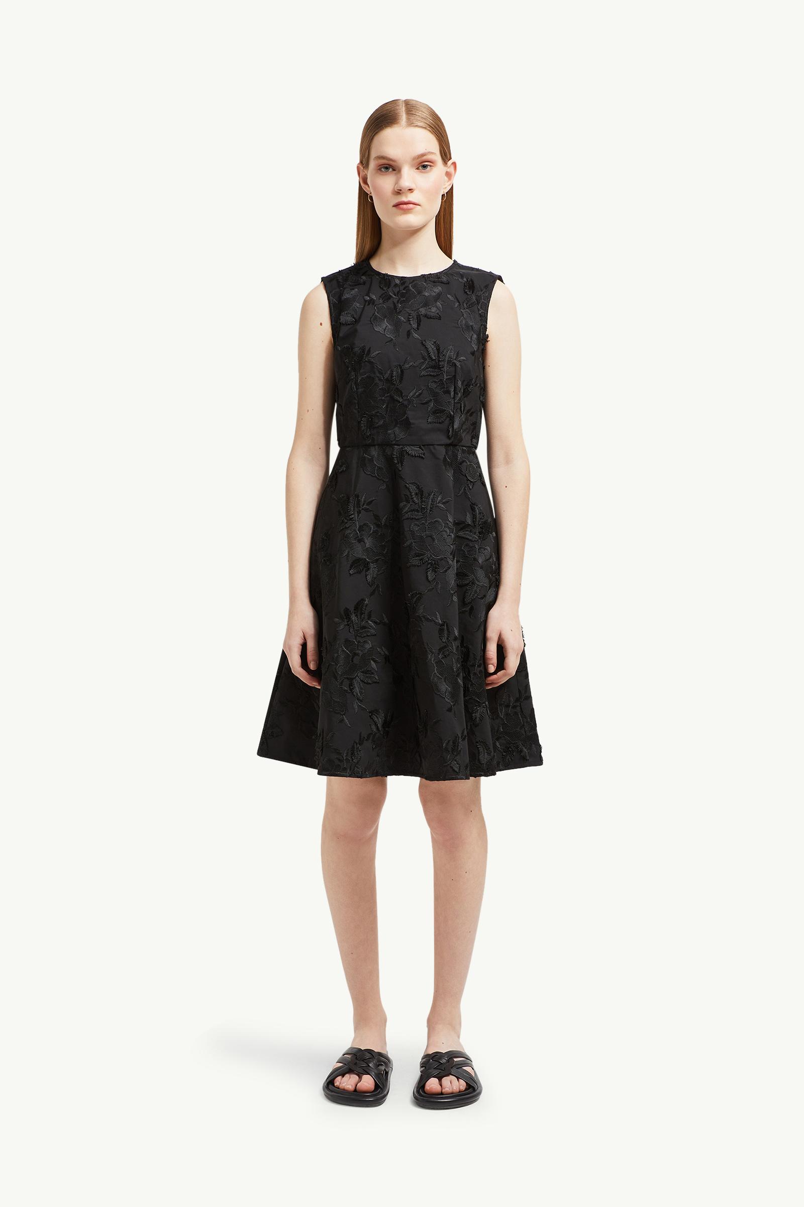 Inspired by gardens in bloom, this cotton blend dress boasts a floral fil coupé pattern. Effortlessly elegant, the design comes in an A-line silhouette.