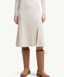 Elevating an everyday essential, this mid-weight skirt is made from a wool and cashmere blend. The piece features a diagonal slit at the front, infusing it with a bold feel. The design pairs easily with knits in the same material, embodying city-driven elegance.
