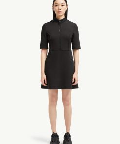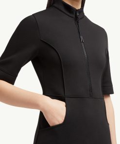 Marking the Year of the Snake, this feminine neoprene dress features a festive logo. The patch fuses three shapes that symbolize love, the holiday and the serpent itself. The design features knot-shaped zipper puller, symbolizing love.